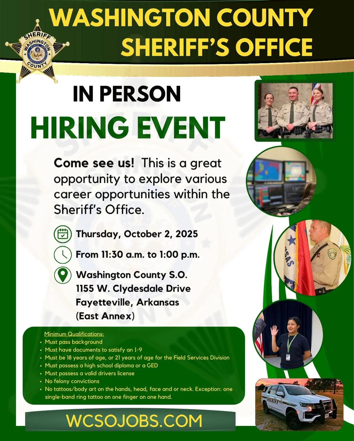 Looking for a rewarding career in law enforcement? View open positions at the Washington County Sheriff's Office and apply now to join a dedicated team serving our community. We are hiring for roles such as police officers, 911 communications specialists, and detention officers. Whether you're an experienced law enforcement professional or looking to start your career in public safety, our opportunities offer growth, training, and the chance to make a meaningful impact. Apply today to protect and serve.